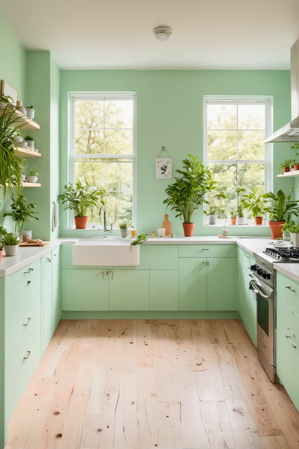 This color brings a peaceful, fresh feeling, making your kitchen a truly inviting space for both cooking and gathering. To bring mint green into your kitchen, you might begin by painting your walls or cabinets.