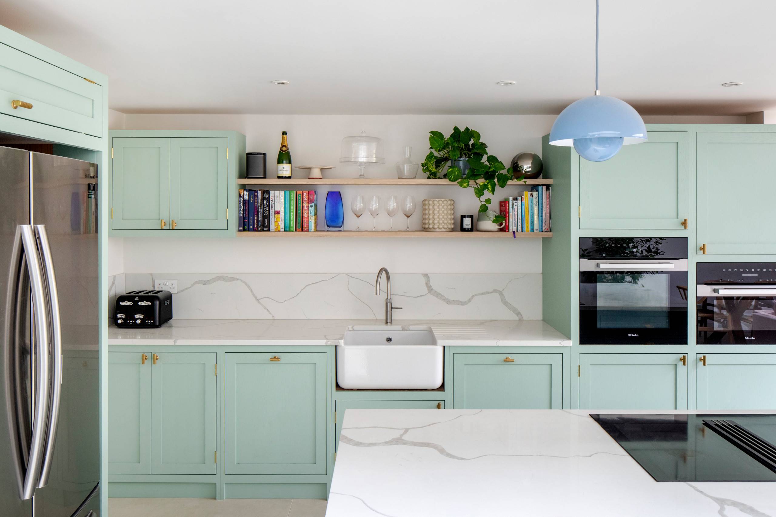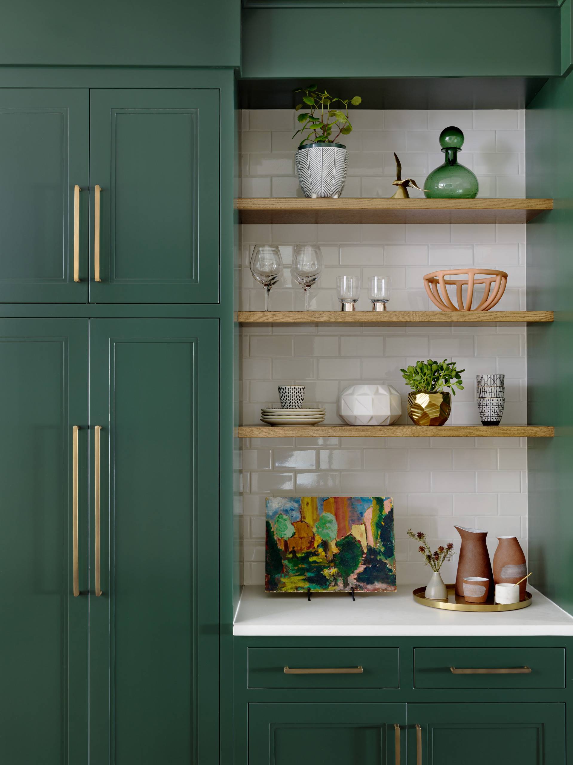 Your cabinetry will still be the main place for storage, but the open shelving is the perfect spot for styling your prettiest kitchen pieces.